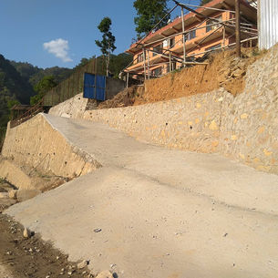 La ou il y avait du potager, un terrain de jeu, de l’espace pour les enfants et les employés de l’orphelinat, il ne reste plus rien. De plus, Le gouvernement népalais a récupérer une bande d’une grande largeur pour mettre en sécurité et renforcer les soutènements de la petite route qui circule juste en dessous.